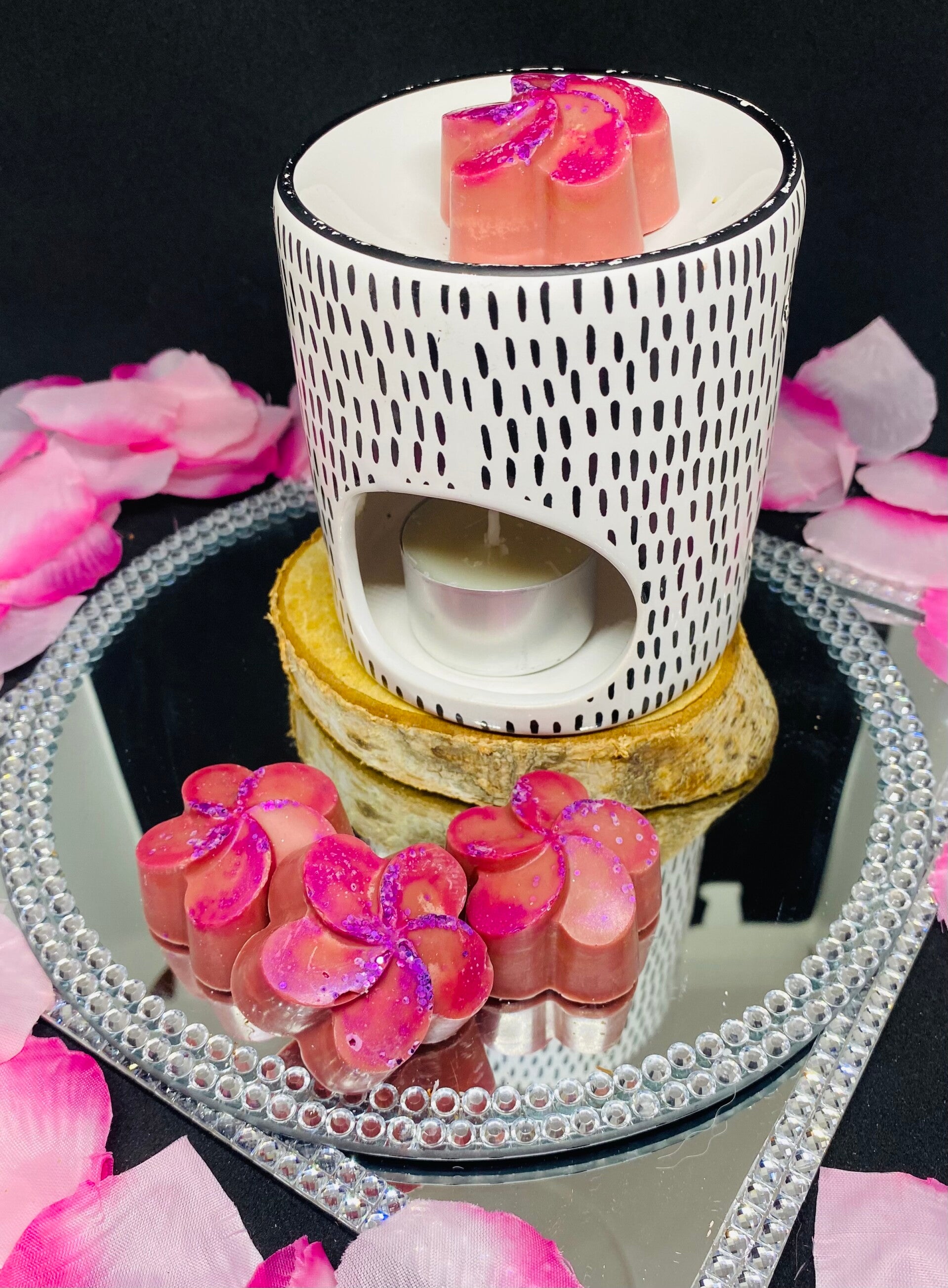 Composition: Cire de soja 89%/Fragrance de grasse 10%/ mica 1%.